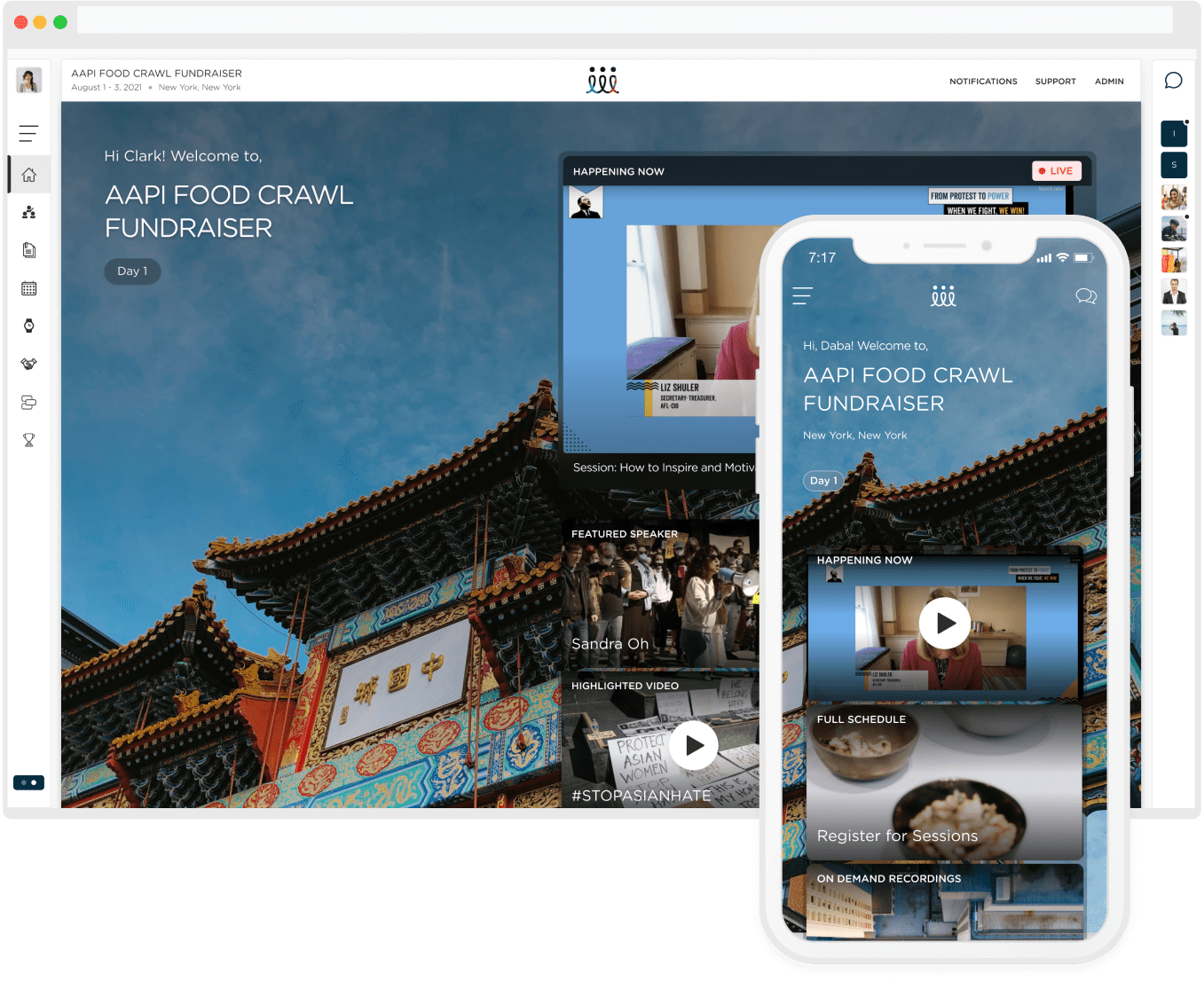 Welcome your attendees with a customizable, branded landing page that links out to all of your event’s experiences.